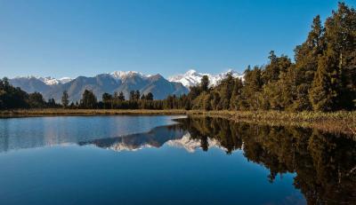 Schon beim Aufstehen zeigte sich heute, es wird ein guter Tag. Die Sonne strahlte am Himmel und es war keine Wolke zu sehen. So ging der Tag trotz des wie fast immer frühen 08:00 Uhr Aufstehens gut los und alle waren bester Laune. Unser erster Weg führte uns ins Gebiet des Fox Gletschers, um zu klären, ob wir unseren geplanten Flug schon eher durchführen könnten. Da dies leider nicht möglich war, haben wir die Zeit mit zwei kleinen Wanderungen überbrückt. Die erste hat uns zum Lake Matheson geführt, in welchem sich bei sehr ruhiger Wasseroberfläche die Berge super schön spiegeln...