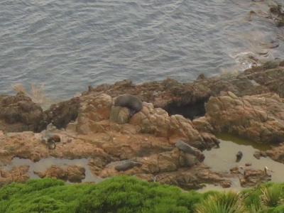 Da es heute richtiges Aprilwetter gab, es neben ein wenig Sonne auch oft stark geregnet hat, hat sich unsere Fahrt etwas verzögert. Somit waren wir erst gegen 18:00 Uhr am südlichsten Punkt, dem Nugget Point. Auch hier hat uns die gesamte Bandbreite des Wetters inklusive eines tollen Regenbogens erwartet. Zu sehen gab es dort Pinguine!!!, wieder einmal Pelzrobben, sowie eine rauhe Küste mit einem Leuchtturm.