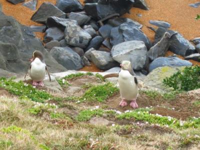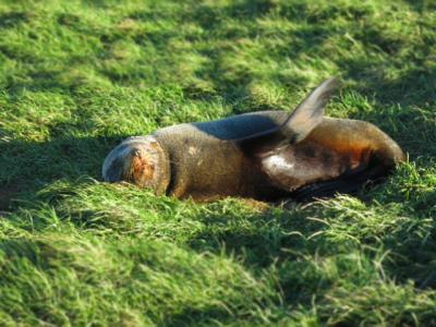 Der Betreiber hat gleich ein kleinen Schwatz mit Fanny gehalten und uns den Tipp gegeben, dass man ganz in der Nähe kostenlos! Pinguine und Robben beobachten kann. Nachdem Franzi erst einmal ausgiebig auf der Wiese mit allen möglichen Spielsachen, die dort bereitgestellt sind, gespielt hat, wollten wir uns die Tiere natürlich nicht entgehen lassen. Das Nature Reserve stellte sich wirklich als ein super Zoo heraus, wir konnten etwa 15 Gelbaugenpinguine und einige Pelzrobben ganz aus der Nähe beobachten. Die Pelzrobben hätte man sogar anfassen können, die lagen dort einfach so rum. Wir haben das natürlich nicht gemacht, ein gewisser Abstand sollte schon zu den Tieren eingehalten werden. Mich hat sehr gefreut, dass Fanny somit auch noch zu einer gewissen Pinguin-Tour gekommen ist.