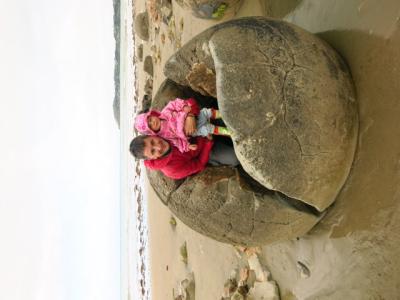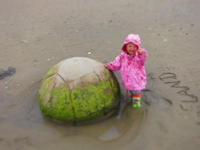 Unsere Fahrt ging dann gegen Mittag weiter, diesmal wieder Richtung Norden, die Ostküste der Südinsel entlang. Das nächste Ziel hieß Moreaki Boulders Beach. Dort liegen auf einem Strandabschnitt von ca. 100m etwa 30 kreisrunde große Steine.